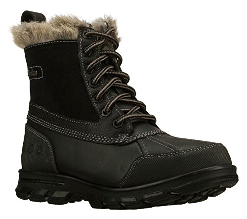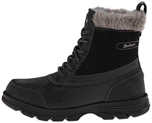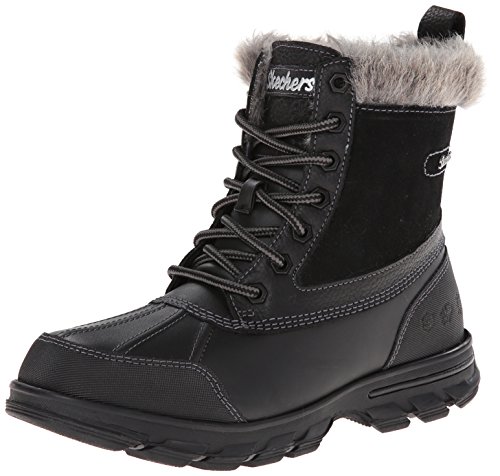 Studio : Skechers Publisher : Skechers Binding : Apparel Product Description Detailed stitching and paneling add visual interest. Weather resistant allows you to frolic outside. Textured toe and heel cup panel highlight style. Lace-up front with metal eyelets equal a customized fit. Logo is featured on the tongue and on the smooth suede shaft. Contrast faux fur collar provide some warmth and fuzzies. Back heel tab for easy on and off. Textile lining and insole. Finished off with a man-made outsole and tread for traction. Imported. 0