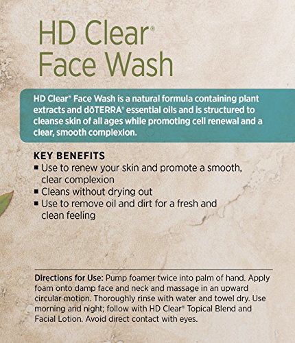 - doTERRA HD Clear Foaming Face Wash is a natural formula containing plant extracts and doTERRA essential oils and is structured to cleanse skin of all ages while promoting cell renewal and a clear, smooth complexion