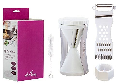 FREE GIFTS INCLUDED: At Velvet Bean, We always like to add a “little something extra” to enhance our customers cooking experience. Our spiralizer includes a bonus hex peeler & superior quality MULTI-FUNCTION PEELER that can be used to peel, julienne, slice, cut, core and even grate! We have even included a little cleaning brush to make cleaning it a breeze!