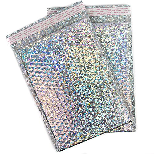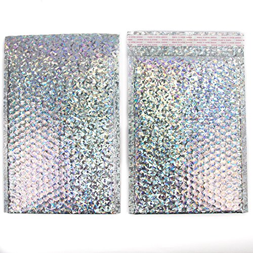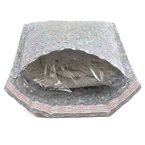 25 Bubble Mailers Size 9x12 Holographic Silver Metallic Colored Padded Shipping Envelopes by Inspired Mailers
