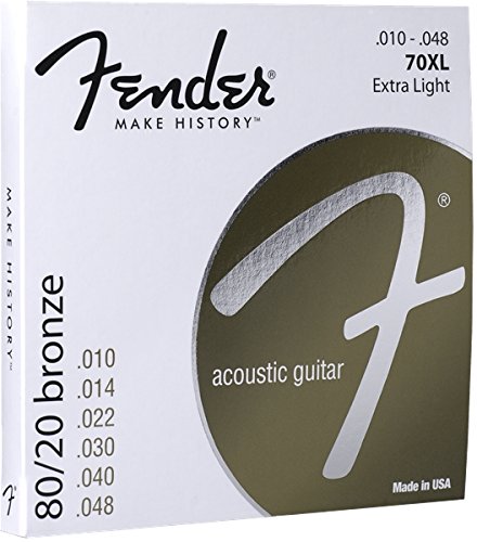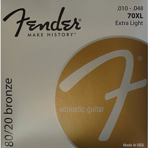 ReleaseDate : 2010-09-21 Studio : Fender Musical Instruments Corp. Publisher : Fender Musical Instruments Corp. Binding : Electronics Product Description Fender acoustic 80/20 bronze feature a loudness andclarity that stand out especially well in band situations.their brightness also complements dark and dullsounding acoustic guitars, bringing them to life. fender acoustic 80/20 bronze are an excellentall-purpose string, whose clear, even tones make themthe perfect choice for most styles of acoustic music. 0