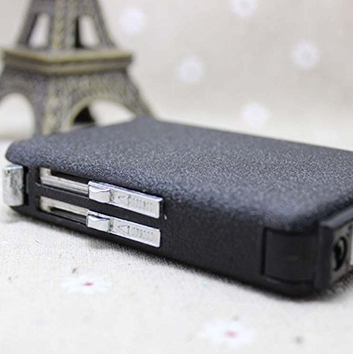 -. Feature : Material: stainless steel / Size: 9.5cmx6.5cmx2cm(HxWxT) / Type: Windproof / Color: Cool Black / Package include:1pcs