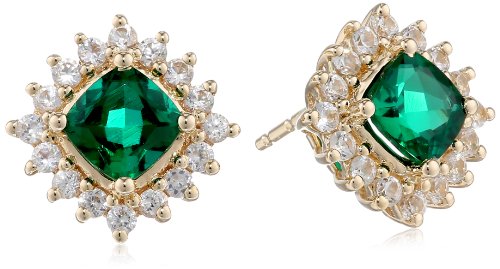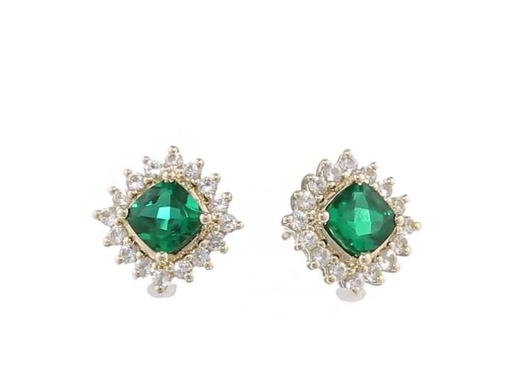 14k Yellow Gold, Created Emerald, and Created White Sapphire Stud Earrings