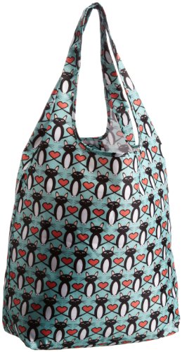 Lightweight reusable shopping bag, that conveniently folds up into a small pouch. Carry it over your shoulder or by its handles