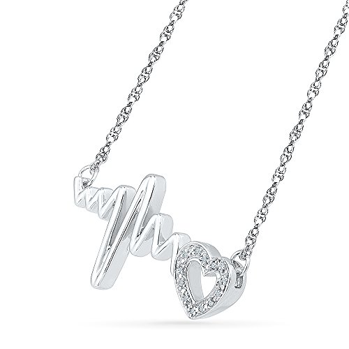 Sterling Silver White Round Diamond HeartBeat necklace (0.03 Cttw)