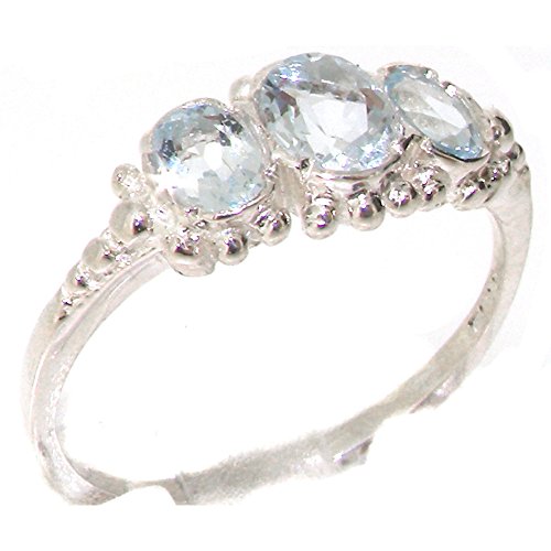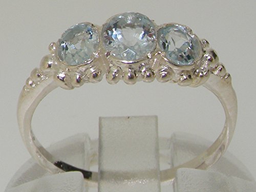-. Title : 925 Sterling Silver Natural Aquamarine Womens Trilogy Ring - Sizes 4 to 12 Available
