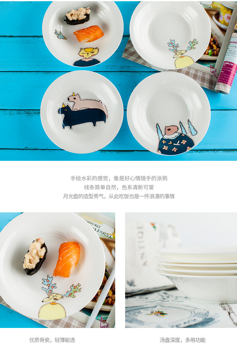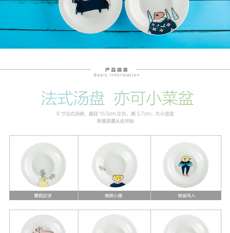韩式6寸陶瓷器餐具圆形骨瓷盘子深菜盘汤盘饭盘水果盘儿童沙拉盘