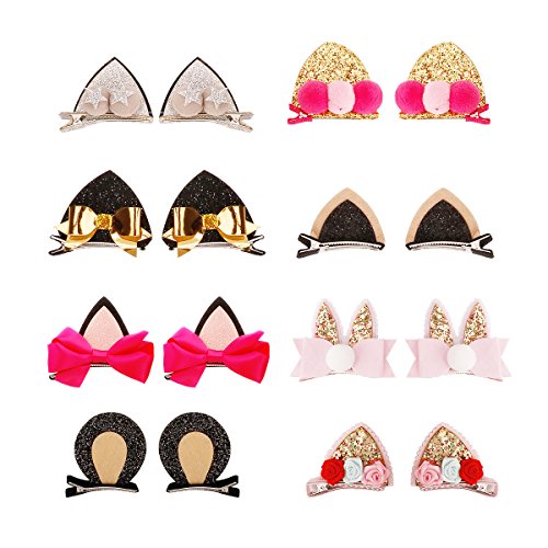 Specifications: ? Material: Polyester Grosgrain Ribbon metal clips with cloth ? Colors: 8 Different Cat Ear Hair Bows Clips and Rabbit Ear Hair Barrettes Included as shown in the photo, each pattern 2 pieces(1 pair). ? size: around 2.0'-3.0' hair clips,different hair clips have different sizes. ? Quantity: 16 pcs(8 pairs)/bag 0