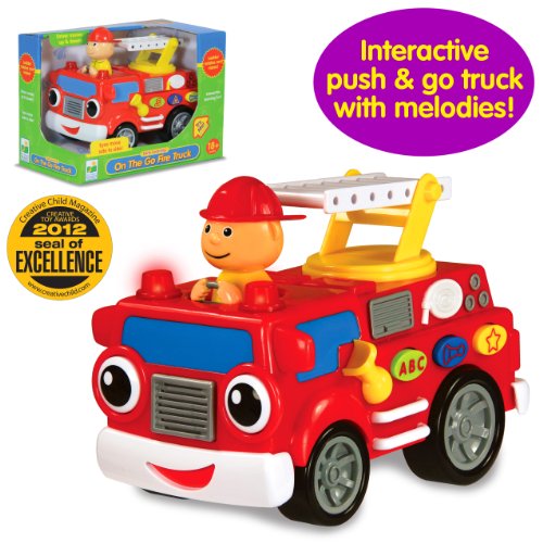 -. Binding : Toy -. Brand : The Learning Journey -. EAN : 0657092132616 -. Feature : Your child will be off to the rescue with the On the Go Fire Truck. This interactive, free-wheel Fire Truck has a working ladder that moves up and down and rotates 360 degrees / Interactive buttons that play sounds and melodies / As your child pushes the fire truck along it plays melodies and has a driver that moves up and down / Winner Creative Child Magazine Preferred Choice Award 2015 / Requires two AA batteries (included). For ages 18 months and up / Features interactive buttons that play sounds and familiar melodies. / Working ladder / Free wheel motion -. IsAdultProduct : 0 -. Label : The Learning Journey International -. Manufacturer : The Learning Journey International -. Model : 132616 -. MPN : 132616 -. PackageQuantity : 1 -. PartNumber : 132616 -. ProductGroup : Toy -. ProductTypeName : TOYS_AND_GAMES -. Publisher : The Learning Journey International -. ReleaseDate : 2012-04-05 -. Studio : The Learning Journey International -. Title : The Learning Journey On The Go Fire Truck -. UPC : 657092132616 -. Warranty : 30 day warranty against manufacturer defects