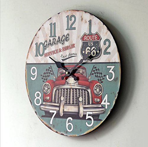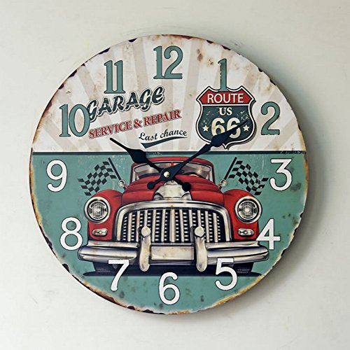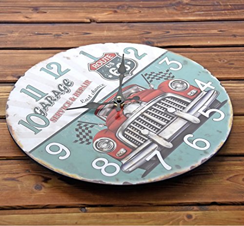 -. Feature : Works with any AA battery (not included), keeps accurate time, Perfect clock for dining rooms, living rooms, family rooms, bedrooms, study room, kitchen, office, or conference room / Vintage looking clock blends in with many different furnitures, different color walls, or decorative wall paintings / Top quality battery operated Wellgain quartz movement with traditional quiet ticking sound, no humming / 14 x 14 inches / Elegant design, made of entire Wood, no glass cover, rustic worn-out look