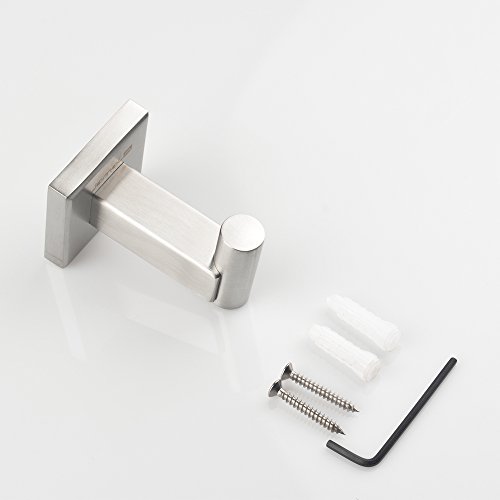 JOMOLA SUS304 Stainless Steel Coat Hook Single Towel/Robe Clothes Hook for Bath Kitchen Garage Heavy Duty Contemporary Square Style Wall Mounted, Brushed Finish