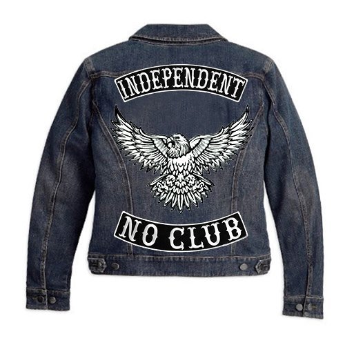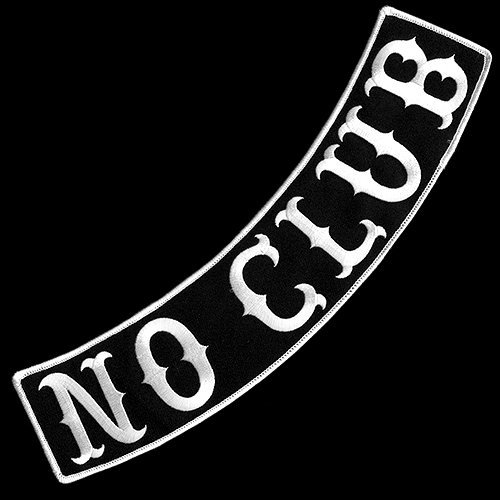 -. Title : NO CLUB BLACK-WHITE EMBROIDERED IRON-ON DECORATIVE PATCH BIKER JACKET RIDER VEST LOW ROCKER 12" VEGASBEE®
