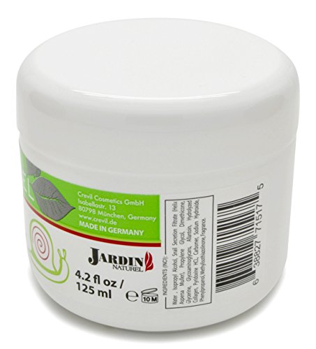 -. Binding : Misc. -. Brand : Crevil Cosmetics GmbH -. EAN : 0638827715175 -. Feature : SOOTHING, NON-GREASY AND REFRESHING GEL- Our gel has a delicate fragrance which combines the unique properties of the snail secretion. It is also lighter than most creams, with a consistency that makes it very easy to apply. Our snail gel quickly absorbs leaving a soothing and silky feeling on your skin. It's like a spa treatment in the comfort of your home! / SOFTER SKIN ONLY A CLICK AWAY: Snail Gel aka Baba De Caracol boast a remarkable range of anti-aging benefits. It naturally regenerates, protects and promotes the skin's natural functions. Our snail gel works great on the face, neck or body. Helps with wrinkles, skin lines, brown spots, acne scars and much more. Note- This product is not fragrance free. / NO PARABENS AND NO SNAILS ARE HURT IN THE PROCESS - Active Ingredients Include: Snail Extract, Allantoin, Collagen, and Vitamin B6. / BEST VALUE ON AMAZON: Huge 4 FL Oz / 125ML jar. Made in Germany. Conforms with all European Union cosmetics regulations, widely considered one of strictest in the world in terms of ingredients quality. / 100% HAPPY CUSTOMER GUARANTEE: If this product does not meet your expectations, we will give you 100% of your money back-no questions asked within the first 30 days. Try us risk free! -. Label : Crevil Cosmetics GmbH -. Manufacturer : Crevil Cosmetics GmbH -. MPN : 51 -. PackageQuantity : 1 -. PartNumber : 51 -. ProductGroup : Beauty -. ProductTypeName : BEAUTY -. Publisher : Crevil Cosmetics GmbH -. Studio : Crevil Cosmetics GmbH -. Title : Snail Recovery & Repair Gel Cream Paraben Free - Non Greasy, Light and Soothing on your Skin - Made in Germany - Nature's Best Moisturizer - Huge 4 fl oz/125ml Best Value on Amazon! -. UPC : 638827715175