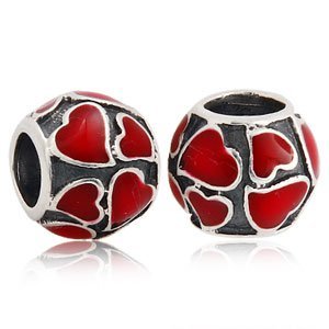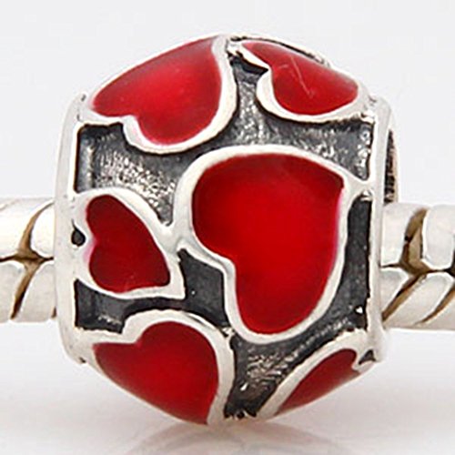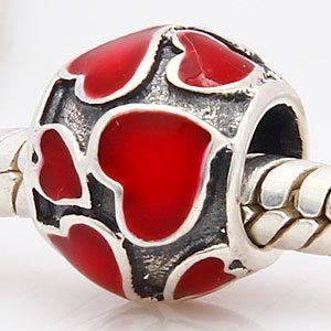 Vintage Love Heart Beads with Red Enamel-925 Sterling Silver Bead Charm Fit DIY Bracelet & Bangle DIY Jewelry (RED