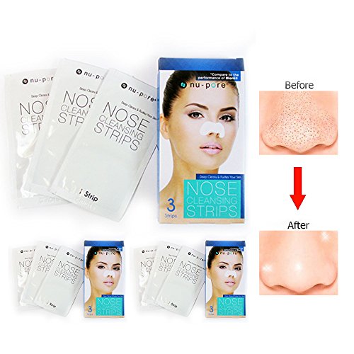 Apply Nu-Pore Nose cleansing strips for gentle removal of stubborn blackheads and to help unclog pores of dirt and oils. Use at least once weekly to help shrink the pores and improve the overall appearance of your skin. Remove deep down dirt and oils from your nose and skin in only 15 minutes with our Nu-Pore nose cleansing strips. The Nu-Pore cleansing strips work to target clogged pores, grabbing the blockage from beneath the skin surface and removing them quick and painlessly. These strips can be used up to 2 times a week, to keep pores clear, helping reduce their size over time. Comes in 3 Pack,= making, 9 Strips total. 0