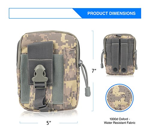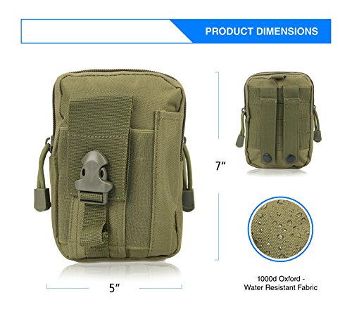 -. Feature : Phone Protection - This multifunctional tactical bag both protects phones from shock and surface damage and prevents scratches. The pouch will fit and protect large and small cell phones. For example, the protective bag fits an iPhone 7 Plus perfectly. / Extremely Durable - Constructed with premium, heavy-duty, durable 1000d oxford fabric. Weather resistant design perfect for hard wearing and red use. Superior quality for tactical sports and operations. / MOLLE Integration - MOLLE external expansion structure, easily customized and attached to a larger bag, backpack or vest with a strong and reliable velcro system. The tactical phone pouch also includes a belt attachment for additional configuration. / Dimensions - 7" height x 5" width. / US BASED COMPANY- We are located in the US and our focus is on providing a great customer experience. Every product comes with an 18 month warranty. If you are unhappy, tell us. We will always make it right.