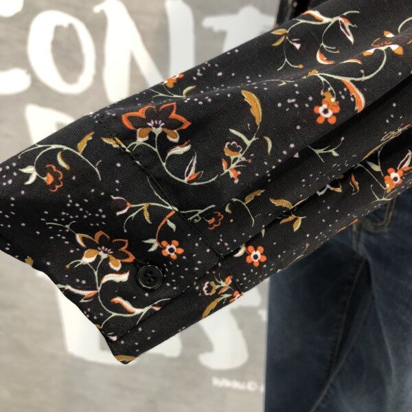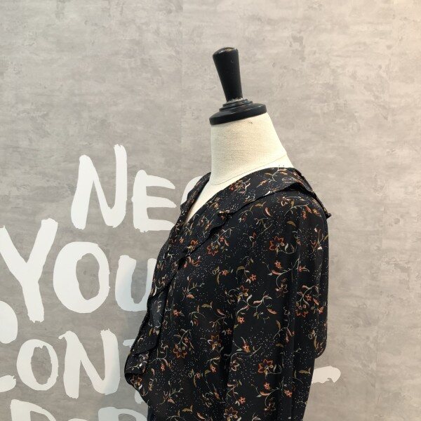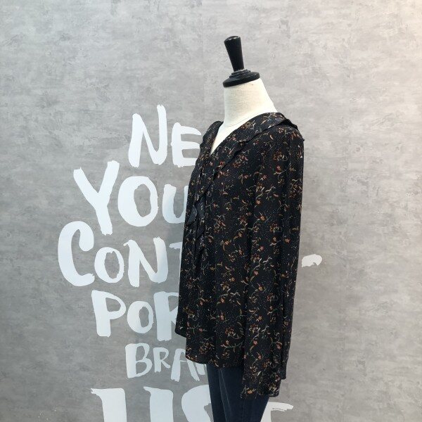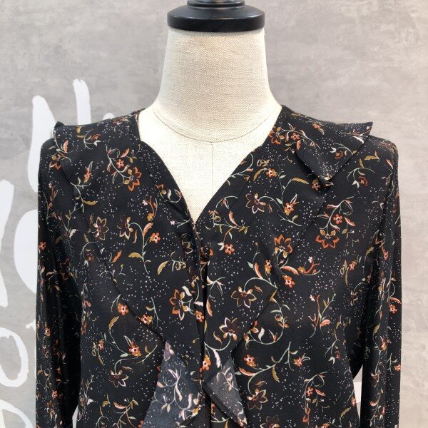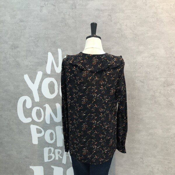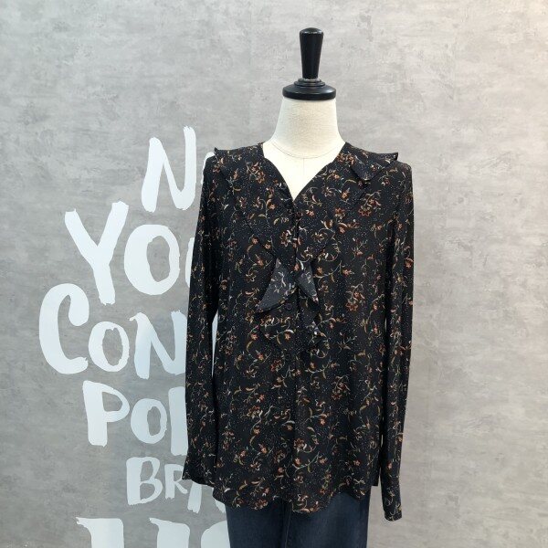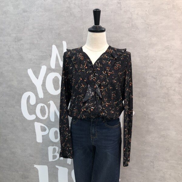 러플 카라 디테일이 러블리하며 플라워 프린트가 에스닉한 블라우스입니다