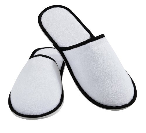 -. Title : TowelsRus Towelling Spa Slippers With Rubber Sole, Closed Toe, White with Black Piping