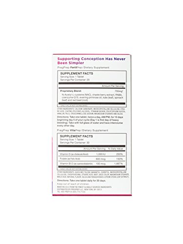 -. Feature : Contains 30 VitaPrep and 14 FertilPrep tablets, 2 doctor-formulated prenatal supplements for women & supports a man's sperm concentration, motility and morphology - all in an easy-to-use, one-month kit / VitaPrep is a streamlined multivitamin with folic acid, vitamin D and B12 to support ovulation / FertilPrep is a cervical mucus thinner with NAC that helps the sperm reach the egg more easily / Male FertilPrep Supports sperm concentration, motility, and morphology while promoting ideal conditions for reproductive health using a combination of well-studied vitamins, minerals, and antioxidants