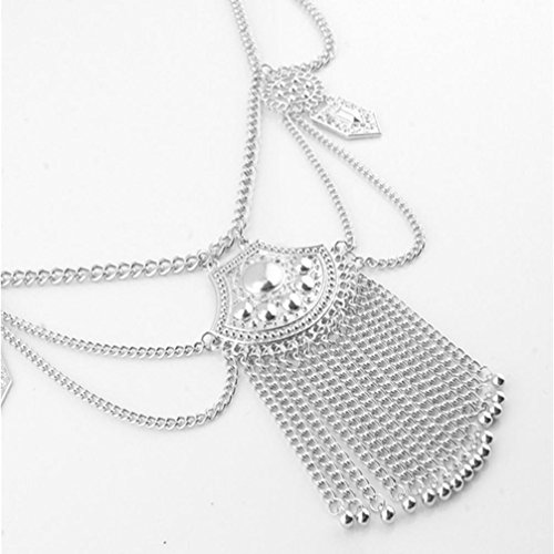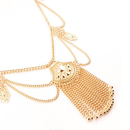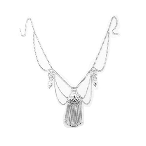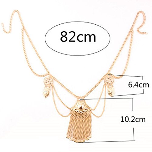 Product DescriptionMaterial: Aluminum alloy Main Colour:Gold 、Silver Sub-Type:Body Chain Type:Necklace Feature:Fashion、Sexy Package included: 1 x Belly Chain0