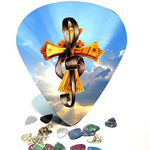 -. Title : Giant / Huge Guitar Pick Wall Art - Christian Cross Treble Clef