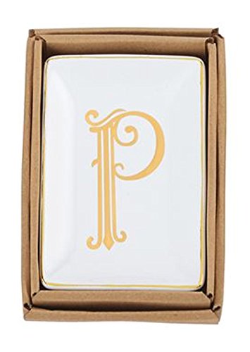 - Small stoneware tray features gold rim and center "P" initial. Arrives in kraft gift box.