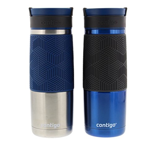 The ultimate commuter companion, the Contigo Transit travel mug has all the features you already love and more! It's basically the Holy Grail of travel mugs or at least the one that will get everyone in your office talking. Spill-proof, easy to clean, stays hot for hours and now it has a thoughtfully engineered CleanGuard spout cover that protects the drink spout when not in use to keep out dirt and germs. It also features Contigo's easy-clean lid - a lid that pivots open for full access cleaning. So go ahead and take Transit for a ride.This special set includes two Contigo Transit Travel Mugs with Comfort Grip, (1) Stainless Steel with Monaco accents &(1) Monaco Blue.Feature