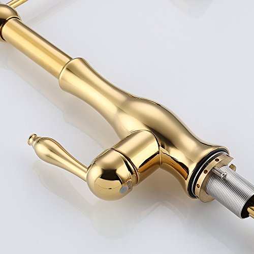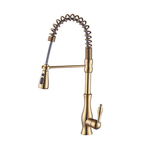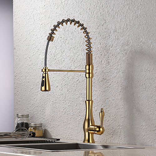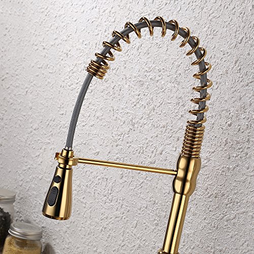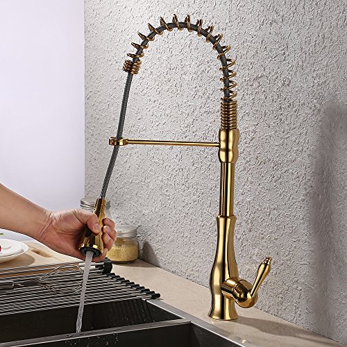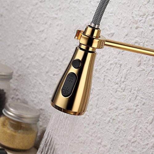 KES Brass Singel Lever High Arc Pull Down Kitchen Faucet with Retractable Pull Out Wand, Swivel Spout, L6915BLF-PG