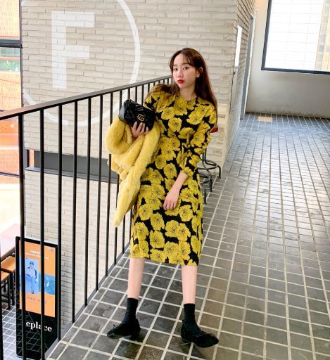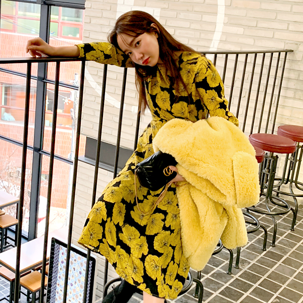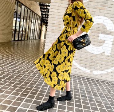 全体にあしらわれた大きめの花柄が大胆でおしゃれな1着☆