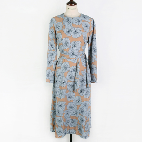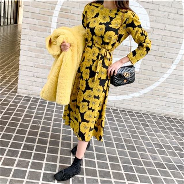 ふわりと広がるフレアスカートがエレガントな長袖ワンピースのご紹介です。