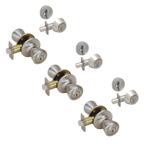 -. Title : 3 - Designers Impressions Salem Design Satin Nickel Entry Knob with Matching Single Cylinder Deadbolt Combo Packs Keyed Alike (We Key Lock Orders Alike for Free)