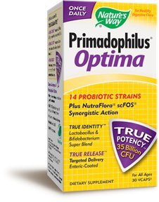 Primadophilus Optima 30 VegCapProduct DescriptionThe Primadophilus brand is backed by an unparalleled True GuaranteeTM that ensures consistent purity, potency and intestinal delivery. This 3 part guarantee includes - True Potency - The potency of CFUs claimed on the label is fully guaranteed until expiration, not just at time of manufacture. True Release - Every Primadophilus capsule and Vcap is specially coated to ensure optimal survival in stomach acid and proper release into the intestine. True Identity - Only the probiotic strains listed on the label make their way into a Primadophilus product.