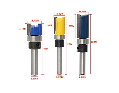 1/4" Diameter Flush Trim Pattern Router Bit Set Shank Top Bearing Milling Cutter AE 3Pcs/Set