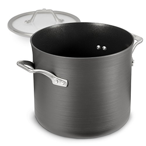 The Calphalon Signature Nonstick 8-Quart Stock Pot with Cover is made with a Sear Nonstick surface that evenly sears, browns, saute and seals in juices when cooking meats, seafood and vegetables. This large stock pot is so durable that you can cook with metal spatulas, spoons and whisks, and it's also dishwasher safe for easy cleanup. Now, you can have it all - a metal utensil-safe nonstick that sears just like stainless. The tall 8-quart Stock Pot is the perfect size for boiling water, cooking pasta, preparing stocks, boiling shrimp, or simmering soups, with beautiful brushed stainless steel loop handles for easy lifting and carrying.Feature