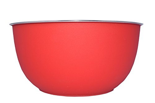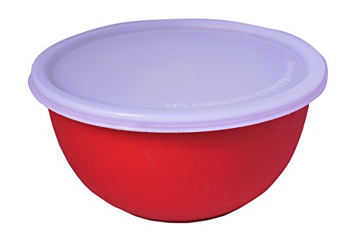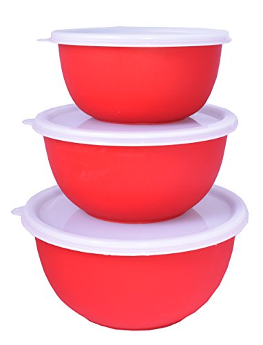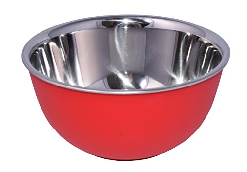 PREMIUM QUALITY: 18/10 Grade Stainless Steel Set of 3 Red Euro Mixing Bowls with plastic lids. The bowls are Double Wall Air insulated which can keep the temperatures longer than the standard bowl. The lightly flared rim and Flat Base prevents spilling, easy pouring and comfortable handling.