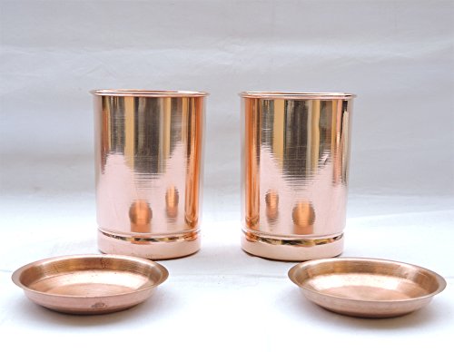Product Description Ayurveda recommends a simple, practical and effective method of drinking water in its most holistic way - drinking water from a copper cup. To make copper water, pour water in the copper cup and leave it overnight. When water is kept for a specific time period in the copper glass, it kills the undesirable bacteria and viruses and the resultant water gets charged with the health benefitting qualities of the copper. Drink it as soon as you get up in the morning. You can also use your copper cup to drink water from it at all times. It's recommended to drink the water at room temperature. The copper cups should not be stored in fridge. Copper darkens naturally over a period of time. The copper cup oxidizes with water and requires cleaning from time to time. Use lemon juice or tamarind to rub the utensils. Leave it for few minutes and wash with water. 0