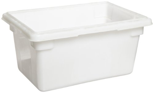 The Rubbermaid Commercial Products FG350400WHT 5-Gallon White Food/Tote Box is made of durable polyethylene for more economical storage and transport applications. The tote is designed to help reduce food spoilage costs with the available tight-fitting snap-on lids that keep food fresh. The box has date control panels on boxes and lids for easier inventory control and is dishwasher and freezer safe. It comes in standard industry sizes to accommodate existing storage racks, counters, etc. The Box is certified to NSF Std. 2, is USDA Meat and Poultry Equipment Group Listed, and is made of FDA compliant materials. This product assists in complying with HACCP guidelines.