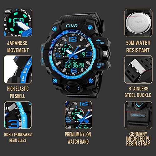 2. High Quality Silicon Watch Band and Stainless Steel Dial Case Back Cover: high quality material is taken to produce our CIVO sport watch, which makes it look much more expensive than it actually is