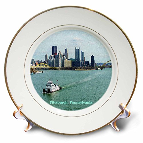 3dRose cp_55312_1 Pittsburgh Skyline Porcelain Plate, 8-Inch