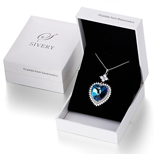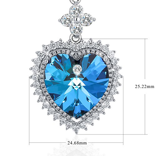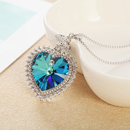 -. Feature : Meterial:Elegant Crystals from Swarovski + Clear White Cubic Zirconia + High Quality Alloy. / Specification:Heart sharp Pendant: 1.1inch(Height)/0.63inch(Width); Chain:15.75inch+1.97inch(Extend Chain); Color: Ocean Blue / QUALITY:Adorable, Fashion Design, Hand Polished, Simple but Elegant. Our crystals provide you a peculiar visual feast and endows a charming imagination and innovation to this elegant jewelry / Application:Come with a Sivery fashionable gift box. Our necklace is a suitable gift for your mother, lover, wife, fiancee, girlfriend.Let it be your love confession! / Notice:Swarovski elements® is not the same as Swarovski®.We take the crystals from Swarovski®with their permission after the necklace is well designed.