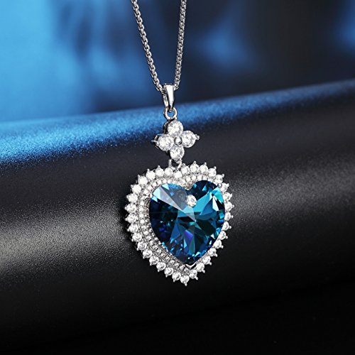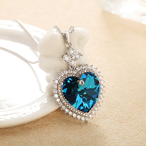 -. Title : Sivery Heart of the Ocean Women Pendant Heart Necklace with Ocean Blue Swarovski Elements Crystal