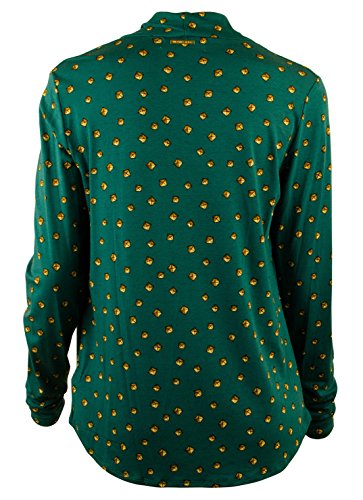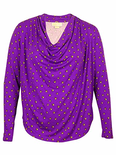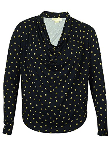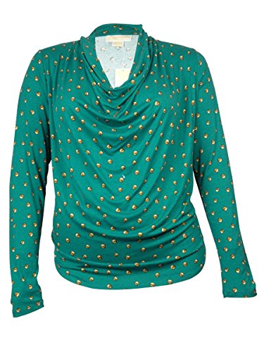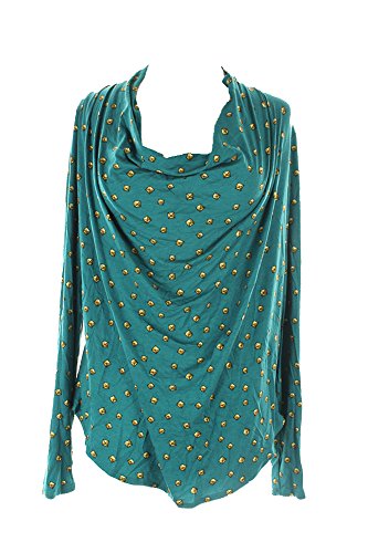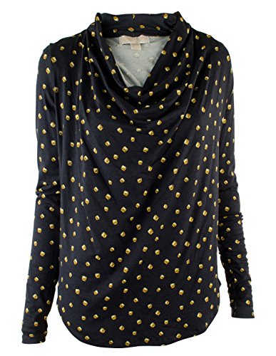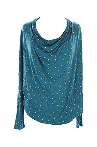 Draped neckline and front; Pullover; Long sleeves; Pyramid-stud print allover; Easy fit; %95 Rayon/ %5 Spandex