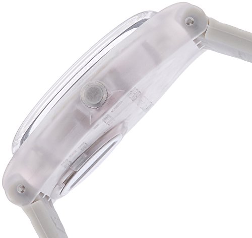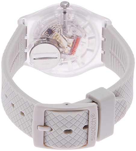 If you want a timepiece that is versatile then this Swatch is the watch to have The silver dial and beige rubber band will compliment anything that you wear The additional features of this watch includes a water-resistant level of 30 meters 100 feet 3 atm and a 34MM plastic case that makes this watch very durableFeature