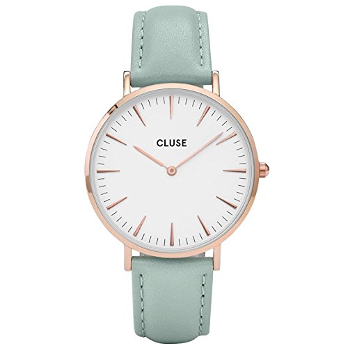 Cluse Women's La Boheme 38mm Mint Leather Band Metal Case Quartz White Dial Analog Watch CL18021