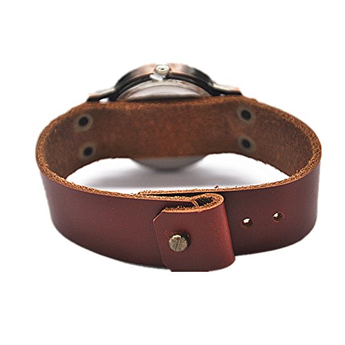 - 1.Comfortable genuine brown leather is suitable for women, men, teen girl and teen boy, watch buckle is unique screw design, four size to adjust, fit for wrist 5.8” to 7.5”. band length:21 cm (8.3 inches),band Width: 2 cm (0.78 inches).