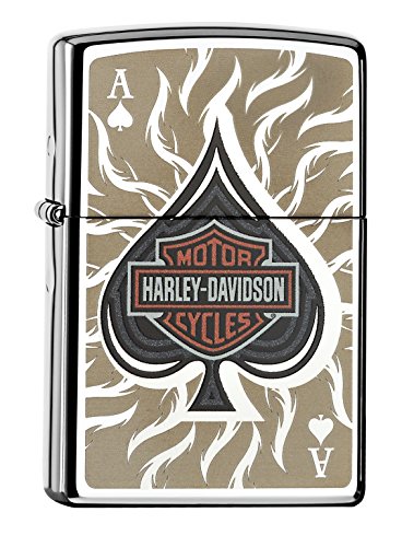 HARLEY-DAVIDSON MENS B&S SPADE WITH ETCHED FLAMES HIGH POLISH CHROME ZIPPO LIGHTER