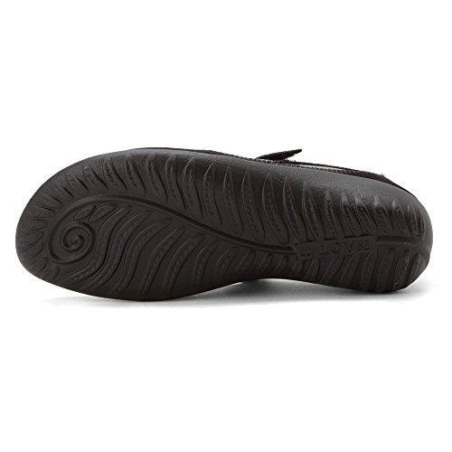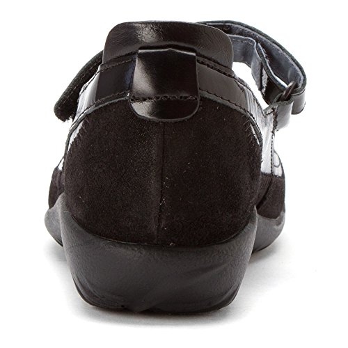 Product Description This beautiful Mary Jane features an adjustable hook-and-loop strap for a secure, comfortable fit. It also has an interior leather lining, a padded heel, and a removable suede-covered footbed that adapts to the shape of your feet and absorbs moisture for an extremely comfortable walking experience. 0