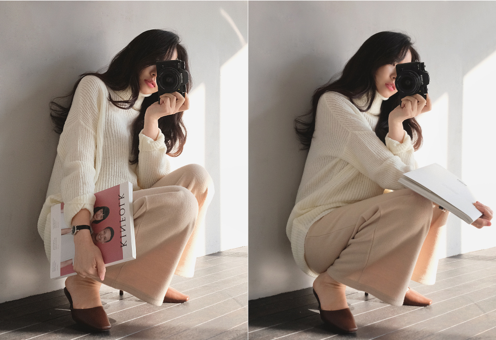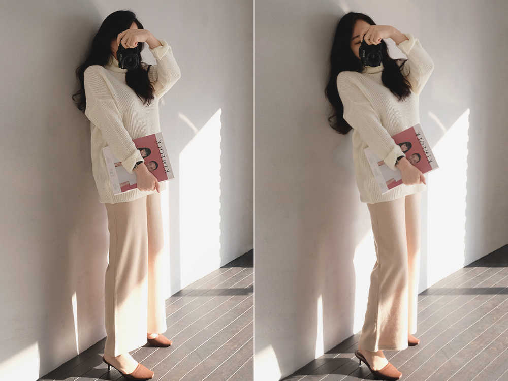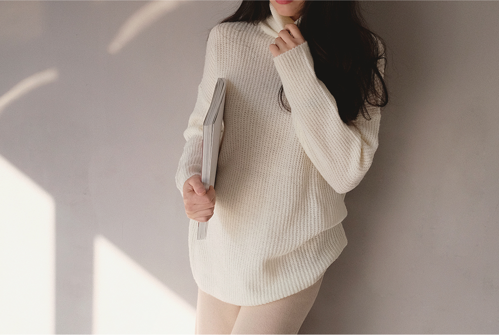 자연스럽게 드롭된 숄더 라인과 엉덩이를 푹 덮어주는 기장감으로