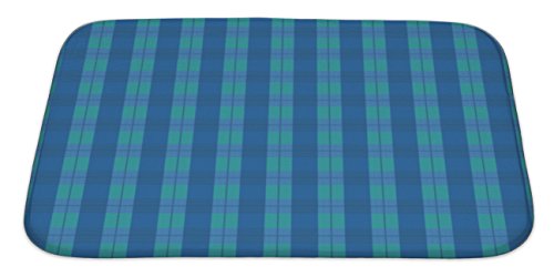 Gear New No Slip Microfiber Memory Foam Blue Tartan Bath Rug Mat, 34" X 21"