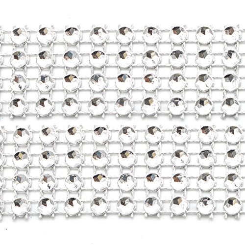 4 Rows 10 Yards Silver Diamond Rhinestone Ribbon, YSLF Acrylic Bling Rhinestone Ribbon Wrap for Cake Gift Present Wedding Party Decoration